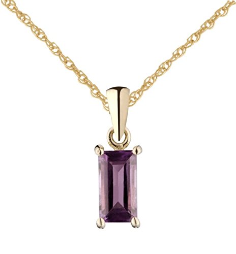 Gembrand Jewellery offer 9ct Yellow Gold Real Amethyst 4x8mm Baguette Pendant with 18" 9ct Gold Rope Chain. This awesome product currently limited units, you can buy it now for £38.02, You save -