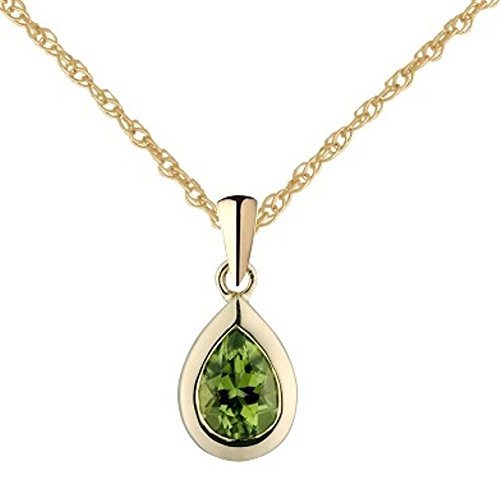 Best Seller! 9ct Yellow Gold Real Peridot 8x6mm Pearshape Rubover Set Pendant with 18" 9ct Gold Rope Chain Review
