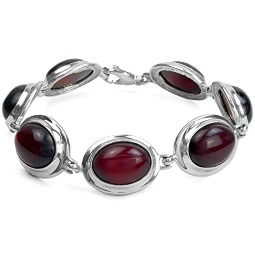 Noda offer Black Cherry Amber Sterling Silver Large Stones Oval Bracelet 19cm. This awesome product currently limited units, you can buy it now for £125.00 £95.00, You save £30