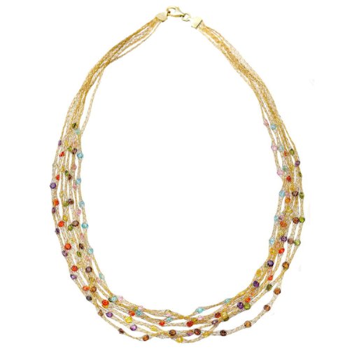Best Seller! Citerna 18 ct Yellow Gold Plated Silver 7 Stranded Mesh Necklace Inwrought with Multi Coloured Gemstones of 43 cm Review