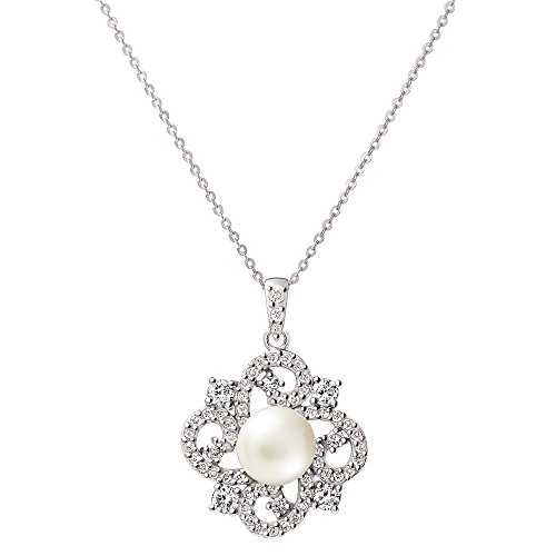 Best Seller! Franki Baker Beautiful White Pearl Pendant Necklace in Pretty Flower Design CZ stone 925 Sterling Silver Chain. Review