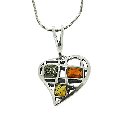 Best Seller! Nova Silver Classic Amber Patchwork Heart Pendant in Mixed Amber on a 46cm Silver Snake Chain Review