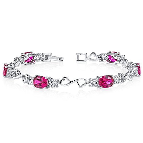 Best Seller! Revoni Designed just for you Oval Cut Created Ruby & White CZ Gemstone Bracelet in Sterling Silver Review