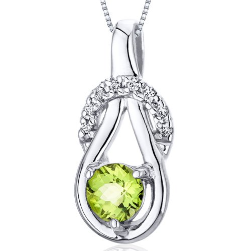 Center Stone: Genuine PERidot, Round Cut with Checkerboard Top, 5 mm diameter, 0.50 carats, Leaf Green Hue with Brilliant Sparkle. Side Stones: 8 pieces SuPER Sparkling Machine Cut White Cubic Zirconia. Pendant: 1.50 grams, Pure Sterling Silver with .925 stamp, Pendant features exceptional Design and Craftsmanship. PERfect gift for Mothers Day, Birthdays, Valentines Day, Graduation, Christmas or just about any other occasion. Money Back Guarantee. Incldues a 18 inch / 46 cm Sterling Silver Box Chain, , style PER-SP10080