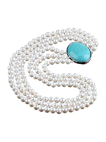 Best Seller! TreasureBay Stunning Multi-Layer Ellena Pearl AA 8-9mm White Natural Cultured Freshwater with Turquoise Gemstone Box Clasp - Presented in a Beautiful Jewellery Gift Box Review